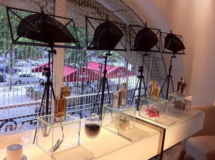I decided to get a Paris-exclusive scent. Here’s how you choose: spray the scent on those black paper fans and fan it in front of your nose. The act of selecting perfumes can’t get any more elegant than that.