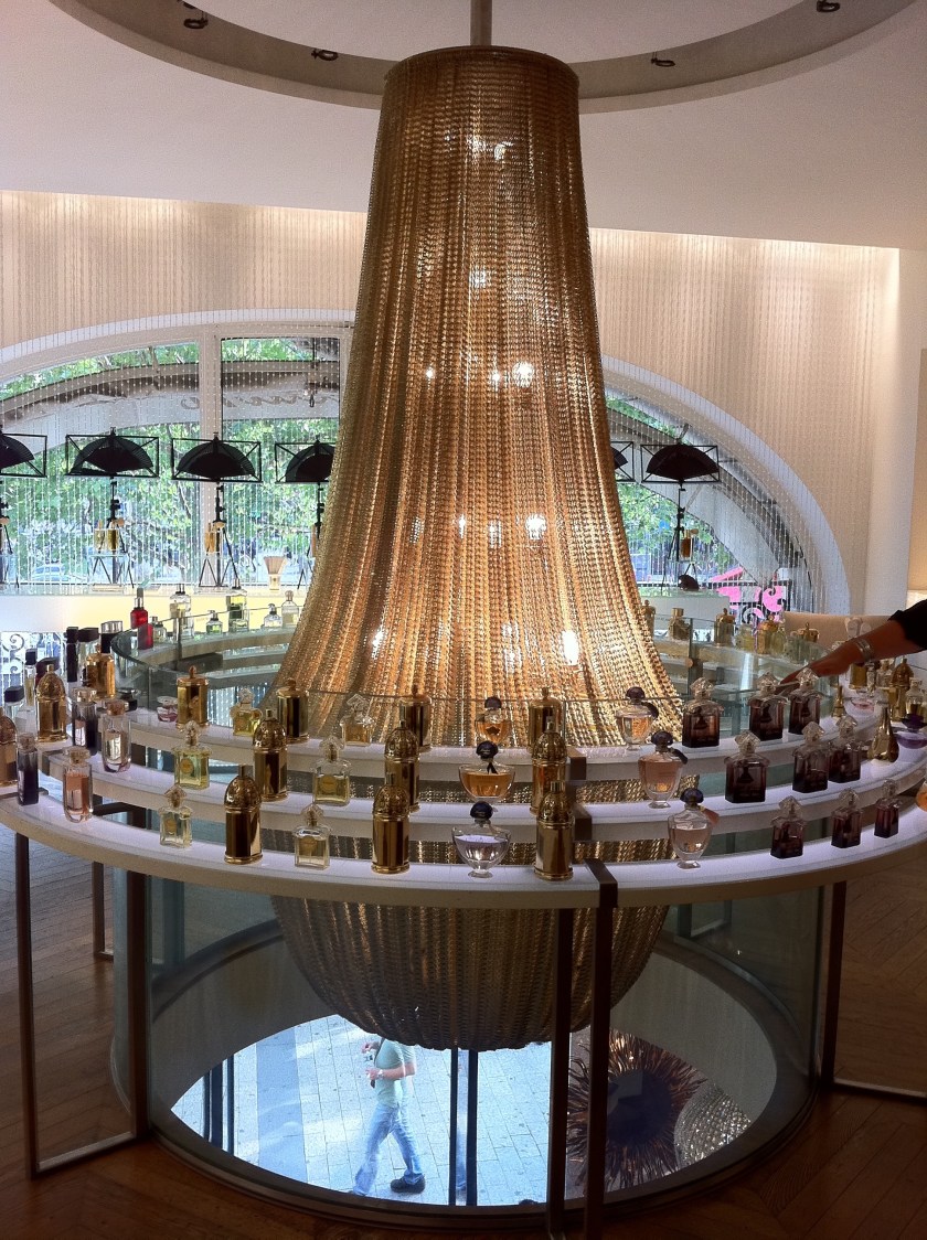And you’re greeted by an elaborate chandelier encircled by the classics like Shalimar and Jicky.
