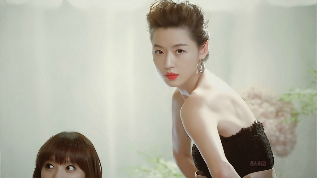 The make-up artist of the character Cheon Song Yi keeps her face bare, and leaves the focus on her lips with a bright pop of colour.