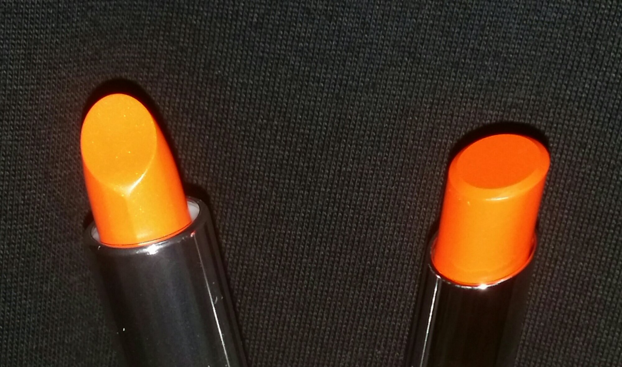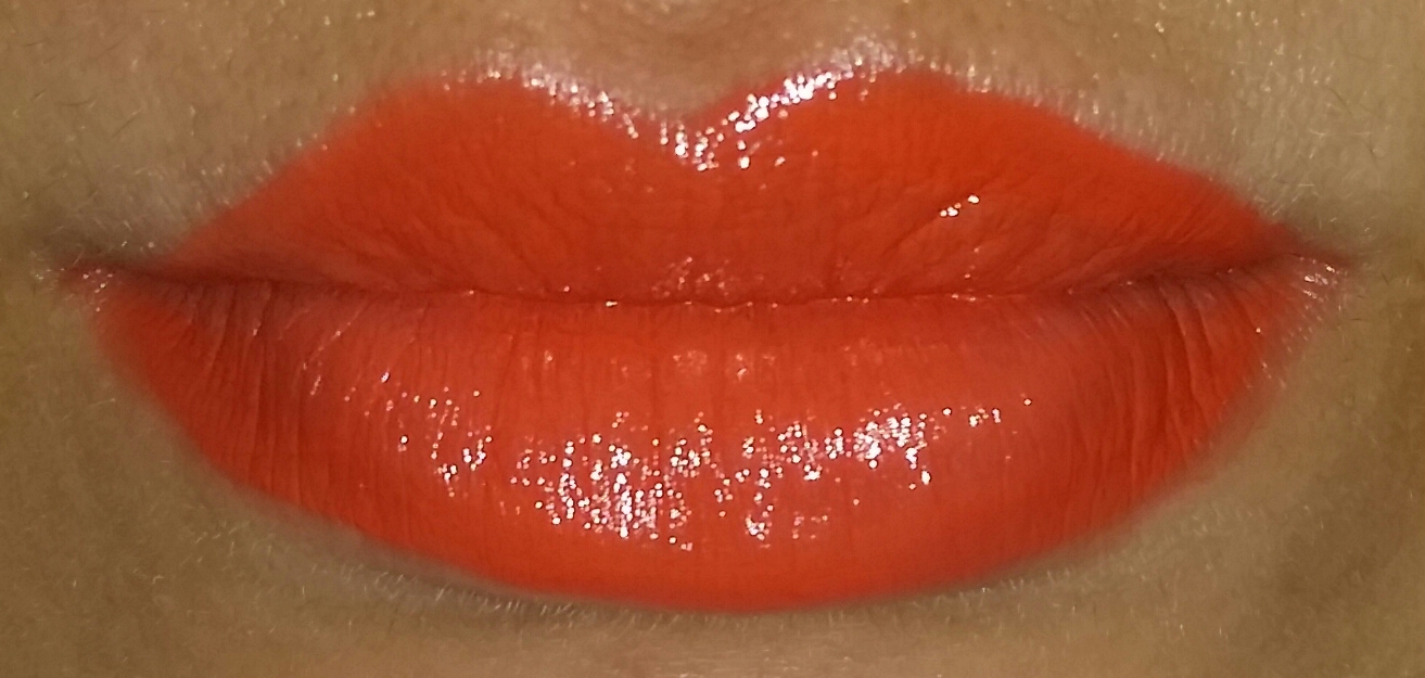The lipstick is more sheer, and is a milky orange. It is not as moisturising, but lasts longer than the Serum Intense Lipstick.
