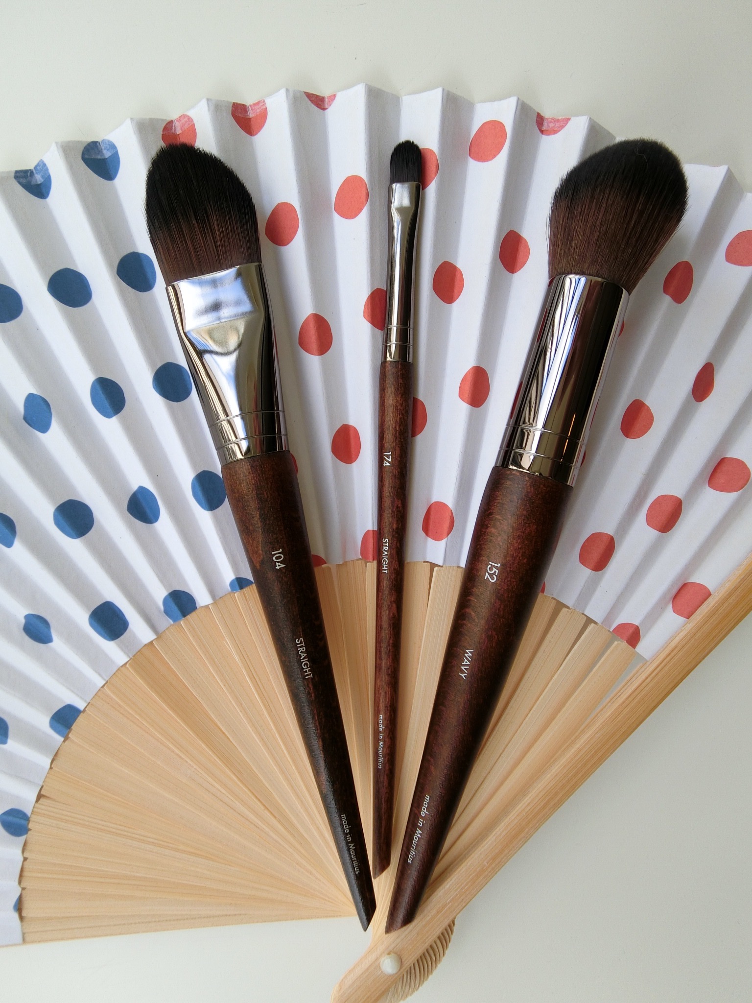 From left: A nude shade for very fair skin. On my golden-rose Asian skin tone, it looks almost white. So I used it around my eye area to brighten it, clean up the area around my brows, and blend out the eyeshadow. I used the shade with the MUFE brush in no.174 with straight hairs (the middle brush in the pic).