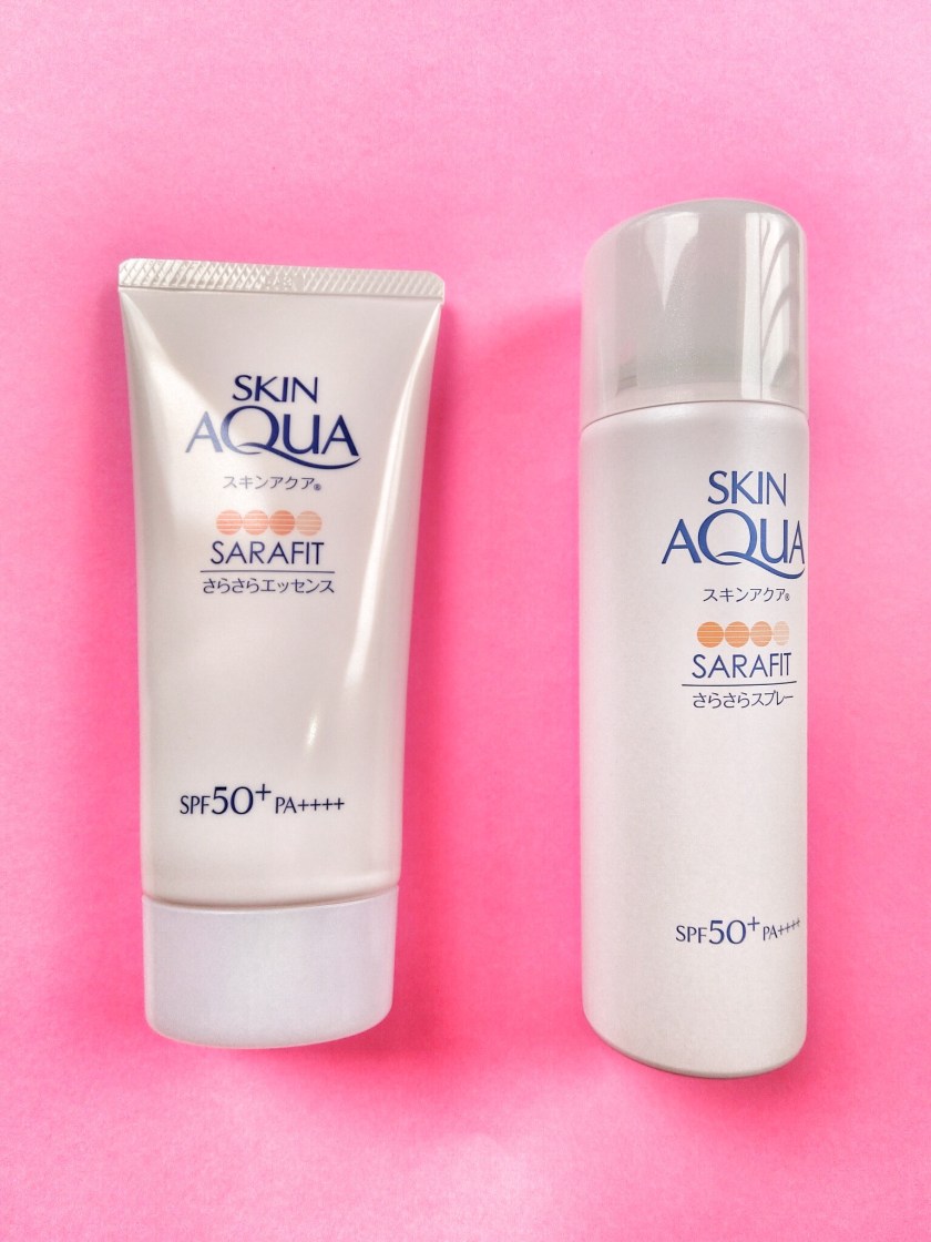 L-R: Sunplay Skin Aqua Sarafit UV Mist (fragrance-free)