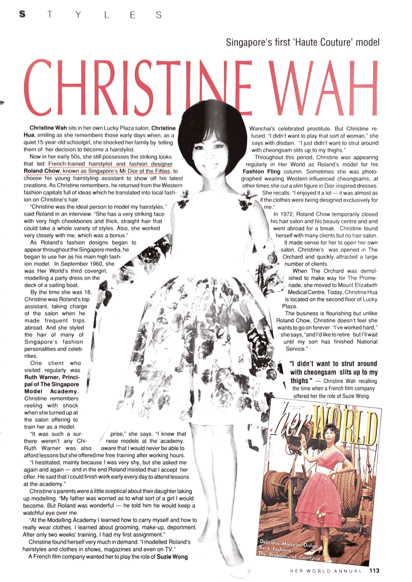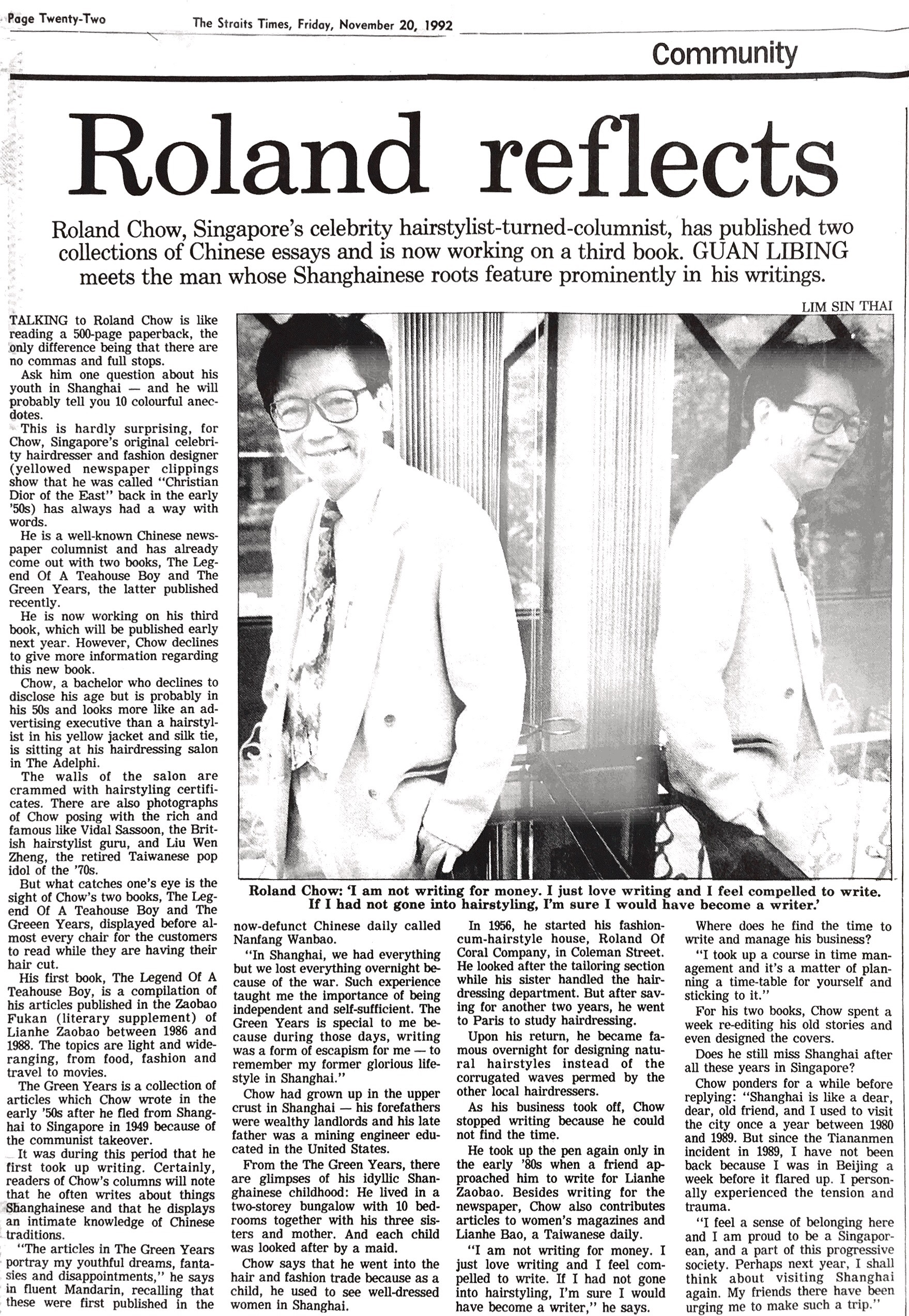 He literally shaped more than the coiffs of Singapore’s high society tai-tais; Chow influenced their tastes too. He was also a prominent columnist who often shared his thoughts on the latest fashion and lifestyle trends in the local newspapers and magazines.
